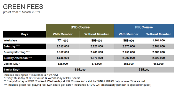 자카르타에서의 골프여행 또는 자카르타로 골프 여행을 오신다면 꼭 한번 라운드를 하시기 바랍니다. 매주 수요일은 프로모션 데이입니다. 매주 수요일만 한 사람당 715,000루피아(약 56,000원)의 그린피로 라운드를 할 수 있습니다.